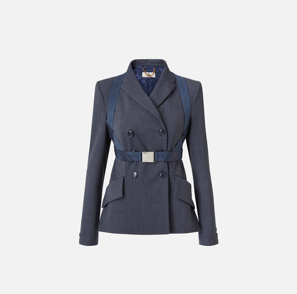 Veste à double boutonnage en crêpe stretch avec embouts